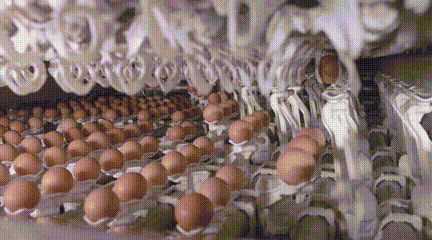 看,自動上蛋系統(tǒng)已經(jīng)介入,一盤盤雞蛋被輕輕吸附,力量均勻且恰到好處,除了避免磕碰、掉落風(fēng)險(xiǎn),更可做到以枚為單位進(jìn)行實(shí)時(shí)追溯。