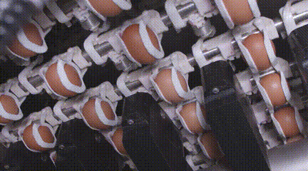 通過清潔和裂紋檢測,接下來進(jìn)入“體測”環(huán)節(jié)。雞蛋們被一枚枚托舉而起,根據(jù)體型(大?。┖腕w重(重量)進(jìn)行分級、篩選,德青源的雞蛋一般分為S、M、L、XL碼,針對市場需要進(jìn)行產(chǎn)品包裝。