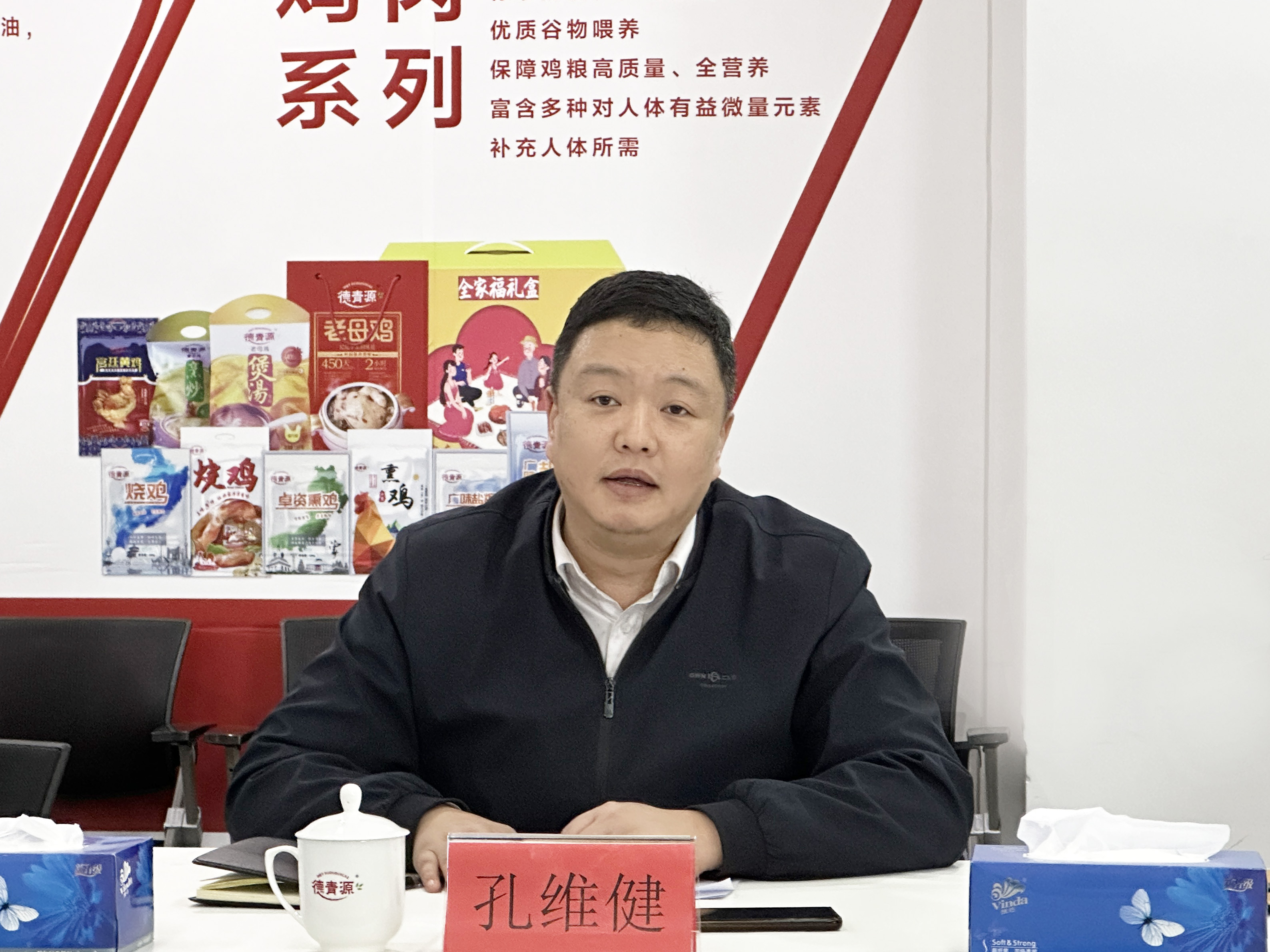 孔維健對周東波董事長一行的到訪表示歡迎,對國藥動保一直以來對德青源的支持表示感謝,并介紹了德青源近兩年的經(jīng)營情況與發(fā)展戰(zhàn)略。他指出,近年來,德青源通過系列舉措,經(jīng)營面貌煥然一新,品牌影響力持續(xù)增強,并在2023年實現(xiàn)扭虧為盈,未來將持續(xù)延伸產(chǎn)業(yè)鏈條,開發(fā)系列高附加值產(chǎn)品。他表示,國藥動保是德青源最主要的藥品疫苗供應商之一,雙方合作基礎深厚,未來除了要升級雙方現(xiàn)有業(yè)務合作規(guī)模,更要進一步拓展在疫苗研發(fā)、蛋品精深加工、市場營銷等領域的合作。